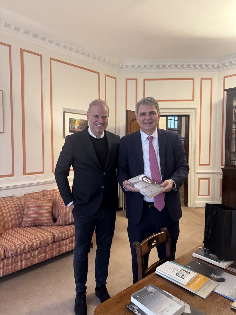 Σκοπός της τόσο τιμητικής επίσκεψης ήταν η απόδοση δύο βιβλίων από το Δήμαρχο Γιώργο Κουτουζή, ως μια μικρή ένδειξη αναγνώρισης του χώρου που έχει δημιουργήσει ο κύριος Πρέσβης αφιερωμένο στο μεγάλο μας ποιητή και διπλωμάτη Γεώργιο Σεφέρη. Τα βιβλία «Ο Πόρος είναι» του Ι. Σουλιώτη και το «Ο Πόρος στους ζωγράφους του 19ου αιώνα» του Γ. Αθανασίου, δέχθηκε με θέρμη ο κύριος Πρέσβης, ο οποίος άμεσα τα τοποθέτησε σε εμφανή θέση στο γραφείο υποδοχής.