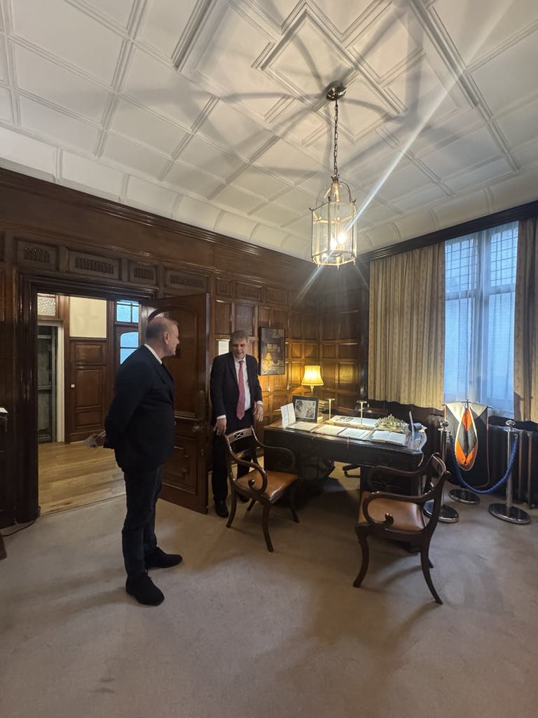 Ο κύριος Πρέσβης επιφύλαξε ιδιαίτερα ζεστή υποδοχή, με ξενάγηση στο χώρο που εργαζόταν ο βραβευμένος με Nobel ποιητής μας, καθώς και στους υπόλοιπους χώρους της Προξενικής κατοικίας συνοδεία καφέ και άλλων ροφημάτων.